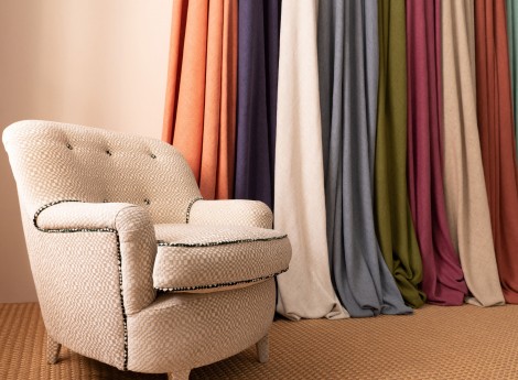 79色のカラーバリエーションを揃えた広巾のキャンバス生地コレクションです。カーテン、椅子張り、ベッドスプレッドなど幅広い用途にお使いいただけます。