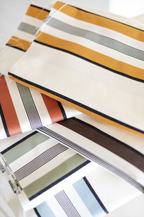 インテリアデザイナー Klas Kallとのコラボレーションで「Mediterranean Seaside II」を発表しました。防汚加工を施した2種類のコットンプリントと、「Mediterranean Seaside」と同じカラーパレットでオリジナルデザインで構成されています。地中海にインスパイアされた新鮮な色、グリーン、ブルー、オレンジ、ブラウンの色展開です。カーテン、椅子張り、アクセサリーにお使いいただけます。Cala Figuera ストライプとのコーディネートに最適です。