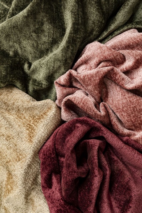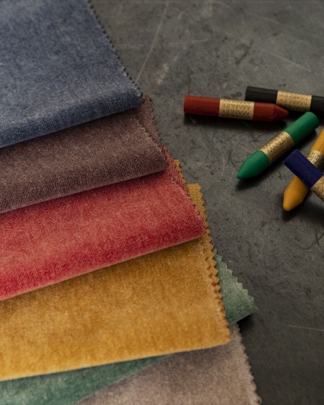 Orsayはストーンウォッシュのような無地のベルベットで、やわらかな手触りと豊富なカラーバリエーションが特徴です。ソファや椅子の張り地や、どんなインテリアにも彩りを添える美しいクッションとしても最適です。