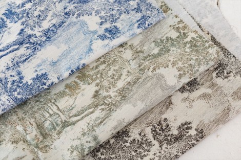 ベル・エポック(美しき時代)のパリの夜を独特の手法で描いたフランス近代美術最高峰の画家の一人、トゥールーズ・ロートレックから名前を取りました。美しいニュアンスカラーの配色が際立つ華やかな生地です。不規則なテクスチャーのシュニール織り生地で非常にソフトでなめらかな手触りです。カーテン、椅子張り、アクセサリーに最適です。