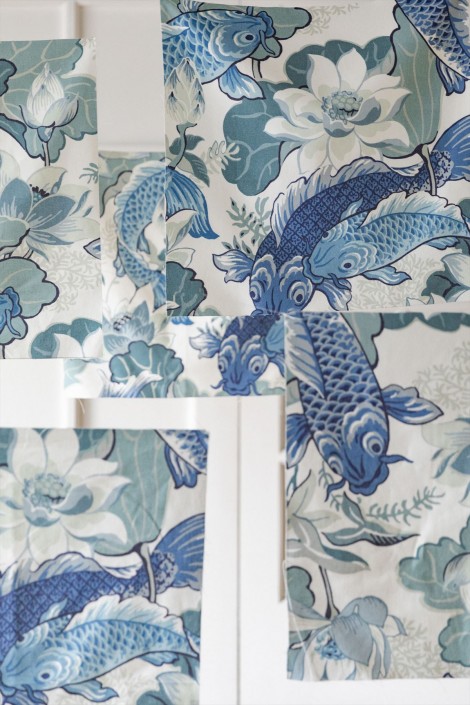 Franzは、日本をイメージしたオリジナルプリントを施したコットン100%の生地です。日出ずる国で珍重されている鯉をモチーフにしています。ブルーとグリーンの色調は、家具や小物、カーテンをモダンで明るい印象にします。