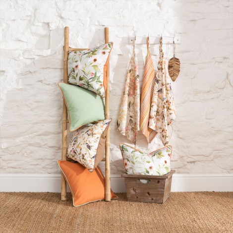 Cottage Gardenは英国のカントリーハウスをエレガントに表現したコレクションです。やさしい色合いの大輪の花々をあしらったコレクションはお部屋にクラシックな英国の雰囲気をもたらします。春、夏、秋、冬のカラーバリエーションに加え、今年の流行色「ペリウィンクル」(パープルの新色)からのインスピレーションもあり、落ち着いた優しい雰囲気や夏らしい明るい雰囲気など、色でストーリーを演出することができます。Cottage Gardenの生地はすべてBCIコットン100%にプリントされています。BCI とはBetter Cotton Initiativeの略で水、化学肥料、農薬を適切に使って綿花を栽培し、環境負荷を軽減する持続可能なコットンの生産方法を目指すコンセプトです。BCI Cottonはそのコンセプトに沿って生産されたコットンです。