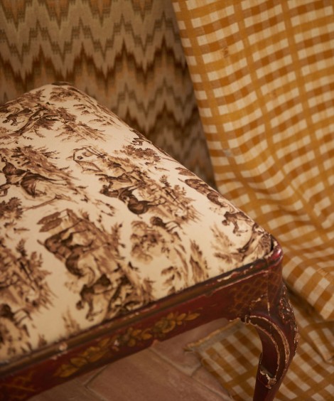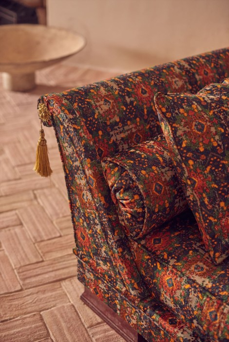 Hesperiaコレクションはヨーロッパの伝統的なテキスタイルデザインに敬意を表し、トワルドジュイ、イギリスの田園風景、ヘリンボーン、スペインのルネッサンスとバロック時代からインスピレーションを得たモチーフなどからさまざまな影響を受けています。