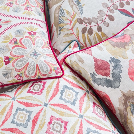 様々なデザインスケールで、花柄や幾何学的な要素を取り入れたコレクションは、フレッシュでソフトなFern(シダの葉のようなグリーン)、鮮やかなSapphire(サファイアブルー)、Pomegrante(ザクロのようなレッド)、クールでニュートラルなSlate(スレートグレー)の4色の印象的なカラーパレットで展開されています。