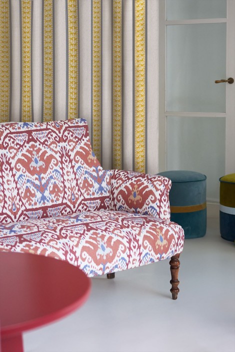 18世紀のオスマン帝国の民族衣装カフタンのデザインから着想を得たコットンとリネンの生地です。ストライプ柄は個性的なカラーパレットで展開され、さまざまな環境で多目的に使用できます。