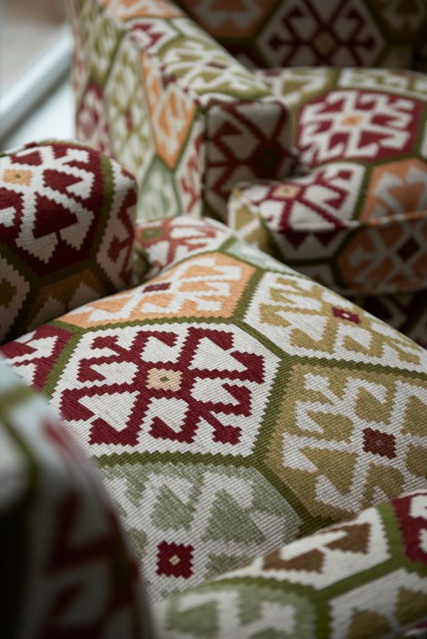 伝統的なスザニ(中央アジアで製作されている刺繍の1種)から着想を得たジャカード織生地で、トルコの職人技と豊かな文化を思い起こさせます。