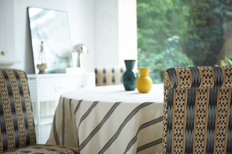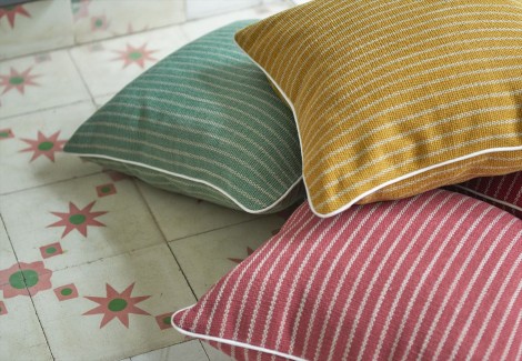 地中海の熟練の職人技を彷彿とさせるロープ状の糸を使用したストライプ柄のコットン生地です。