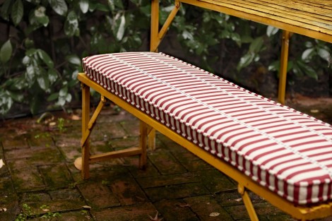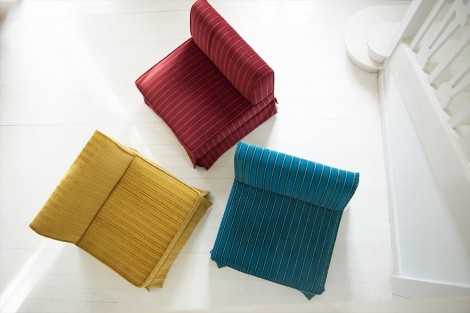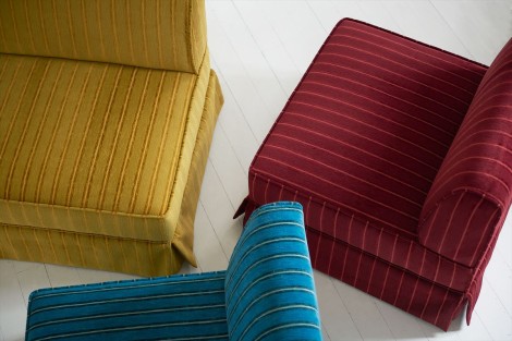 幅広い単色カラーによるクラシックなストライプ柄です。アウトドアでもインドアでも使用できる生地で、風合いと高い耐久性が特徴です。