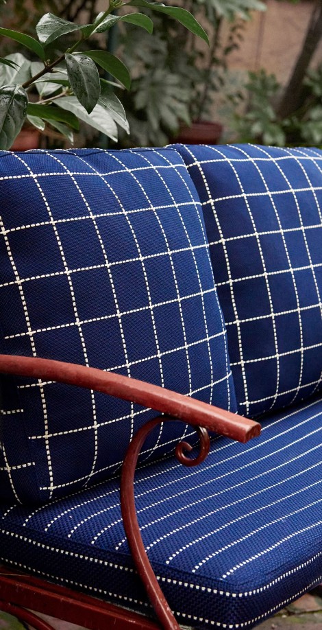 アウトドアでもインドアでも使用できるポリプロピレン100%の生地です。幾何学模様がはっきりとしているため、洗練された装飾を求める人に最適です。
