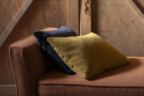 Molly:その名の由来は「mollify」で、落ち着きと柔らかさを与えるブークレ生地です。寒い夜に丸くなるためのブランケットにも、ソファに安らぎを与えるクッションにもMollyを使うことで贅沢で幸福感に満ちた体験ができます。