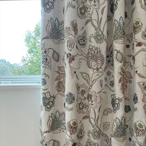 スラブのブロックプリント織物からインスパイアされた優雅で流れるようなデザインです。グリーン、アクア、テラコッタ、ピンク、ストーンのしっかりとした色調のベースの上に、柄のディテールとテクスチャーを備えたスタイリッシュな花のデザインが描かれていて、そこからカラーストーリーが作り出されます。 重みがありながら流れるようなテクスチャーのリネンにプリントされています。